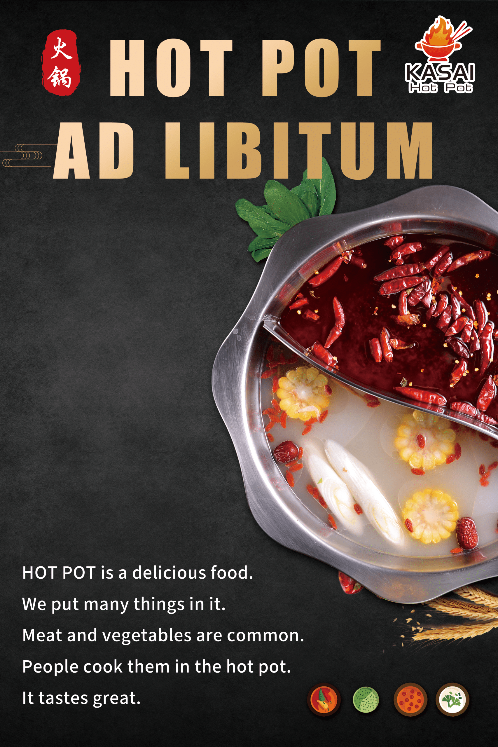 Hos Kasai Hot Pot kan du få den ultimative hot pot-oplevelse med vores autentiske kinesiske Hot Pot ad libitum! Vi tilbyder ubegrænsede mængder af friske råvarer, smagfulde bouilloner og lækre dips, der giver dig friheden til at sammensætte din egen perfekte hot pot.